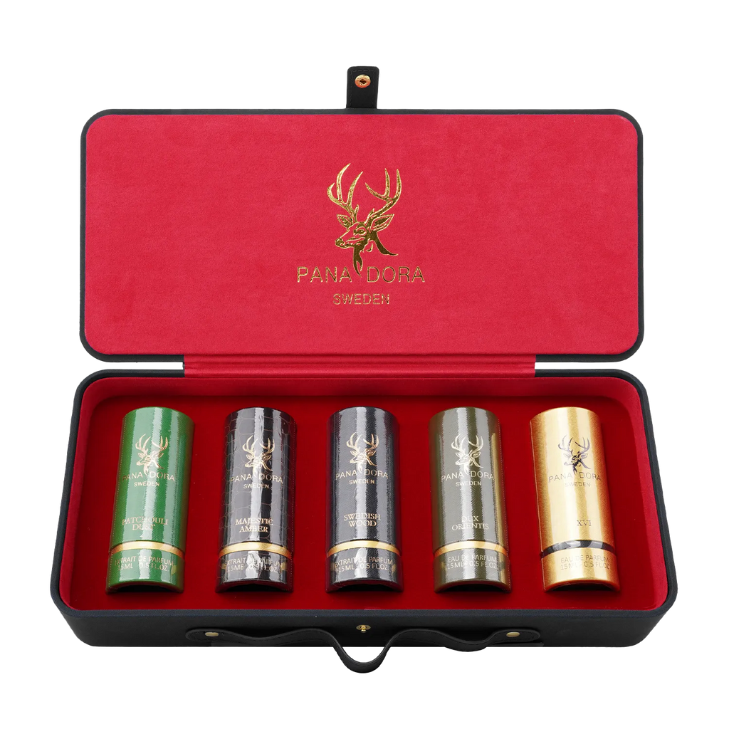 Choose 5 fragrances from our exclusive collection of 21 signature scents — bold, fresh, woody, oriental, mysterious, or sweet — and curate a set that reflects your mood, your story, your world.