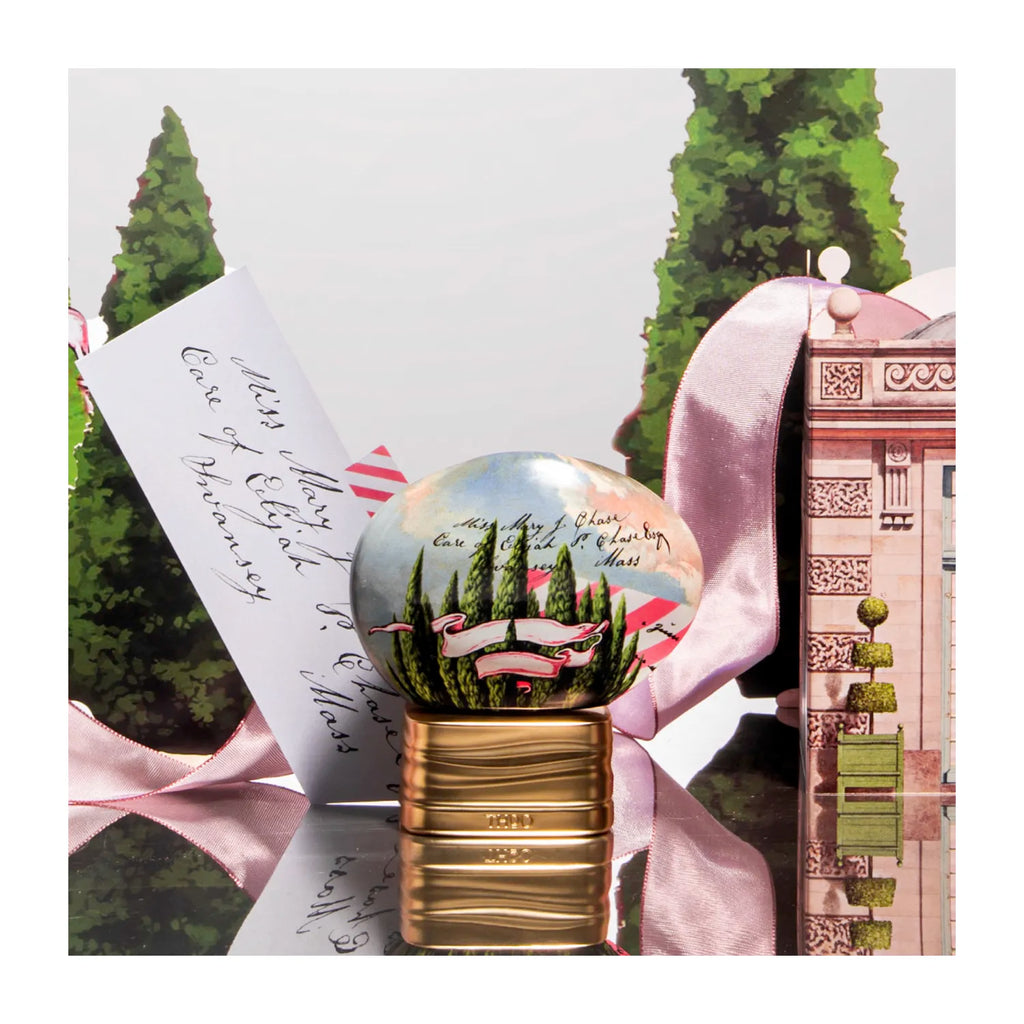 In the base, a precious accord of osmanthus, vanilla, benzoin, amber, and musk creates a long-lasting and irresistible olfactory signature — one that dances between innocence and transgression, just like the queen who inspired it.