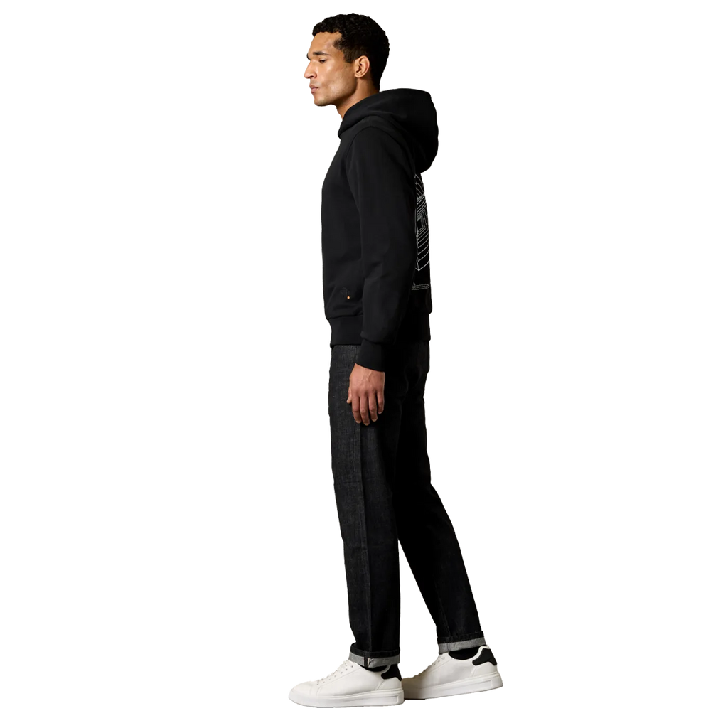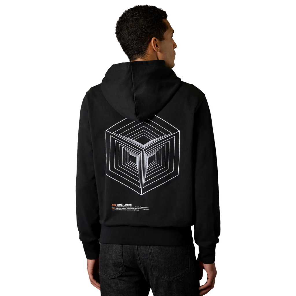 The CUBE hoodie impresses with a minimalist, modern design featuring a striking graphic element on the back. The highlight is the intricately embroidered 3D cube graphic, showcasing clean lines and geometric depth. Below it is the inscription “NO TIME LIMITS”, reflecting the philosophy of timeless fashion.