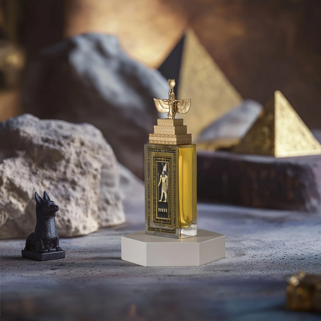 Horus – Extrait de Parfum is the scent of protection, courage, and divine legacy. Bold and enduring, it celebrates the moment light conquers darkness — a fragrance for those who rise, lead, and protect.