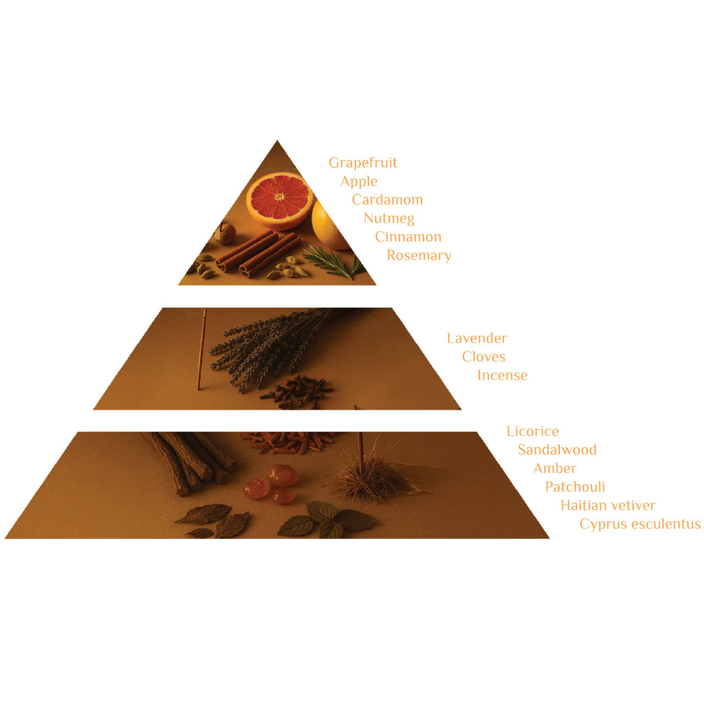 A whisper of dawn breaks over the Nile, carrying the vibrant Grapefruit zest and crisp freshness of Apple. A warm, noble spice awakens — Cardamom, Nutmeg, and Cinnamon — radiating courage and divine determination. A final breath of Rosemary seals the promise of remembrance, invoking a kingdom destined to rise again.