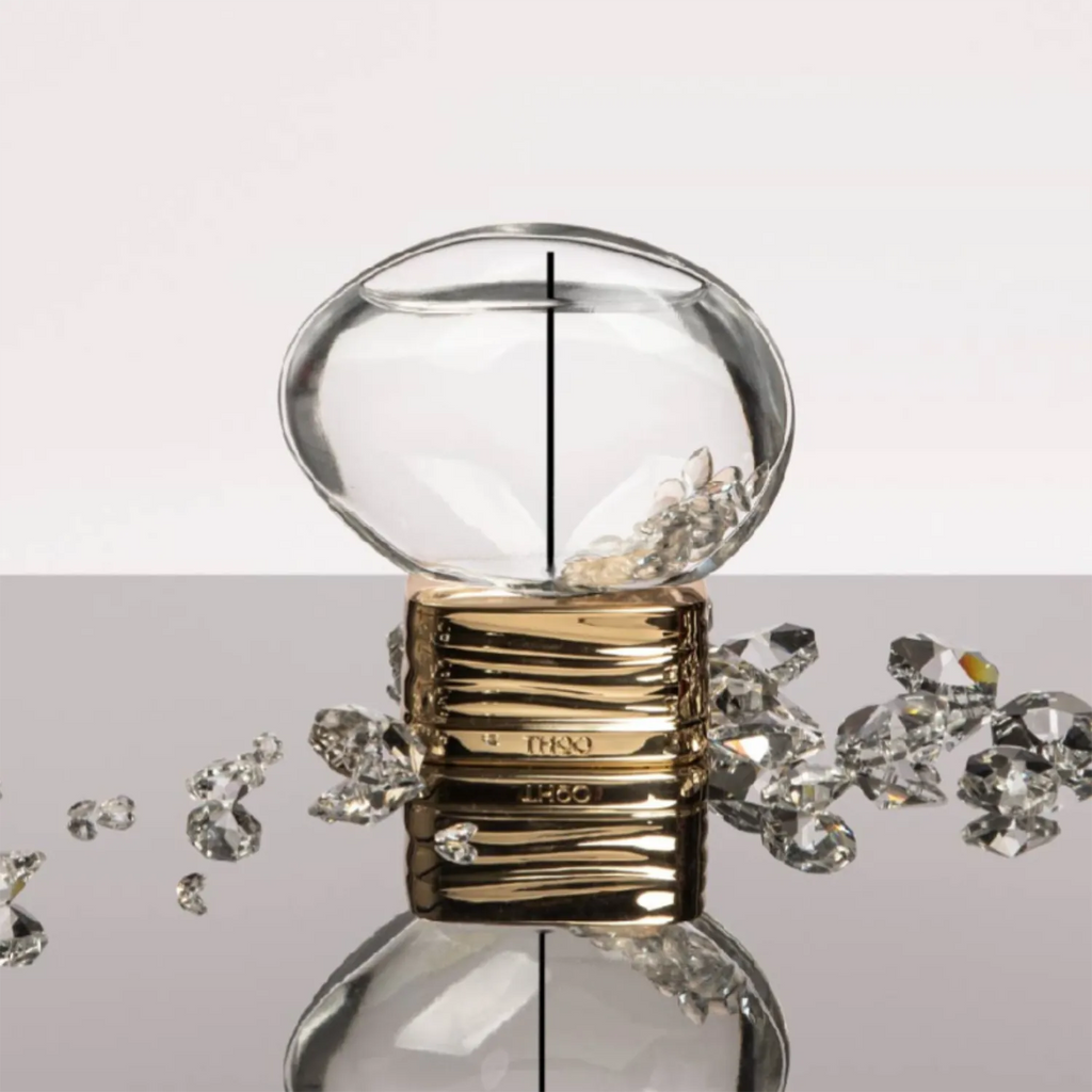 The fragrance is like the distillation of a diamond — a radiant, woody, mineral, and amber creation where innovation meets elegance. At its heart lies Sacrosantol®, a unique and exclusive molecular structure derived from sandalwood by-products: natural, sustainable, and absolutely luminous. Coincidentally, the chemical properties of Sacrosantol® closely resemble those of a diamond.