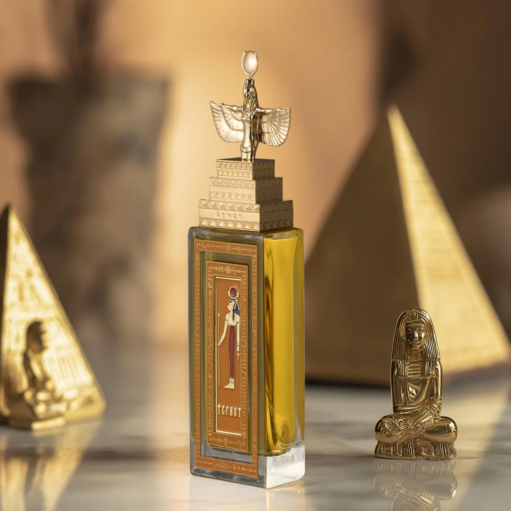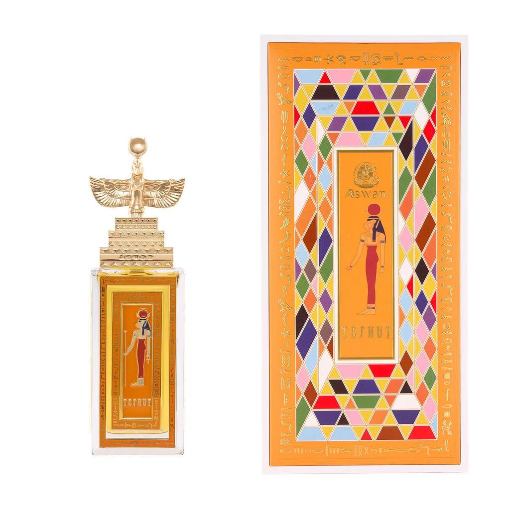 Tefnut – Eau de Parfum is a fragrance of dual forces: the fierce and the nurturing, the storm and the calm. It embodies the goddess who brought life to the desert and grace to the skies.