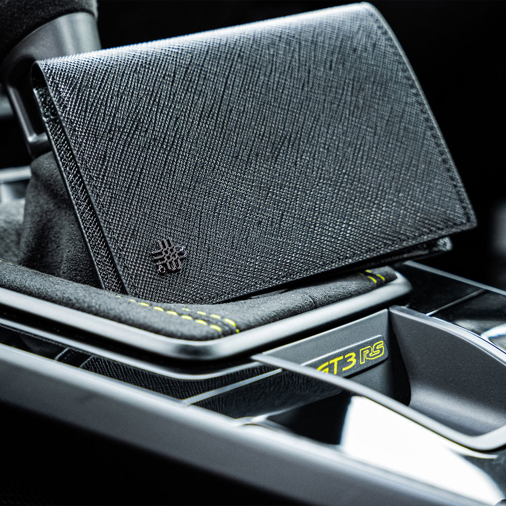 This slim, handcrafted Saffiano leather wallet stands out for its simplicity. It is handy and compact.