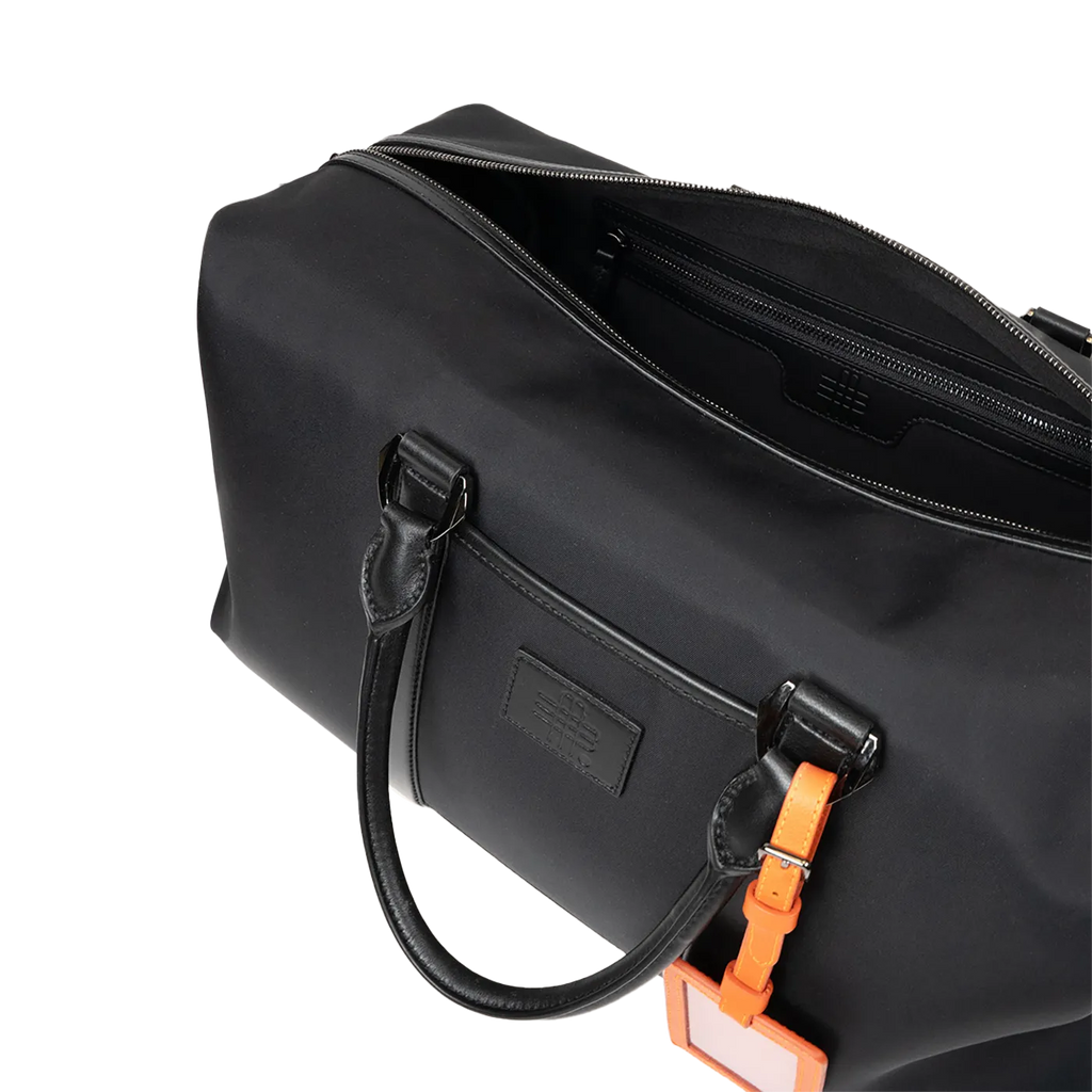 This compact weekender impresses with well-thought-out functionality and versatile use — ideal for day trips, the gym, or a short getaway. A practical inner pocket ensures optimal organization, while the striking orange address tag adds a signature accent.