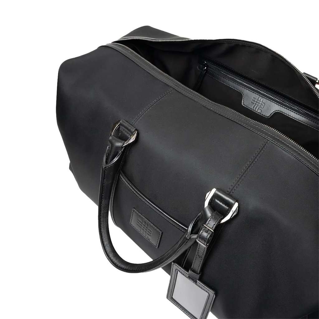 Diese Weekender-Tasche vereint eine besondere Materialkombination mit durchdachter Funktionalität. Ihr großzügiges Innenfach bietet ausreichend Platz für ein langes Wochenende, während der individuell gestaltbare Adressanhänger den anspruchsvollen Charakter unterstreicht. Ein ausdrucksstarkes Accessoire für stilbewusste Reisende.